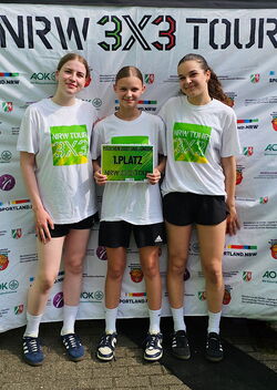 Am vergangenen Donnerstag traten wir in Begleitung von Herrn Löwer bei der NRW 3×3 Tour in Gladbeck an. Zu unserer Überraschung war nur ein weiteres Team in unserer Altersklasse gemeldet, weshalb wir zum Aufwärmen zunächst gegen eine Mixed-Mannschaft spielten. Gegen das Team verloren wir zwar klar, hatten aber viel Spaß.