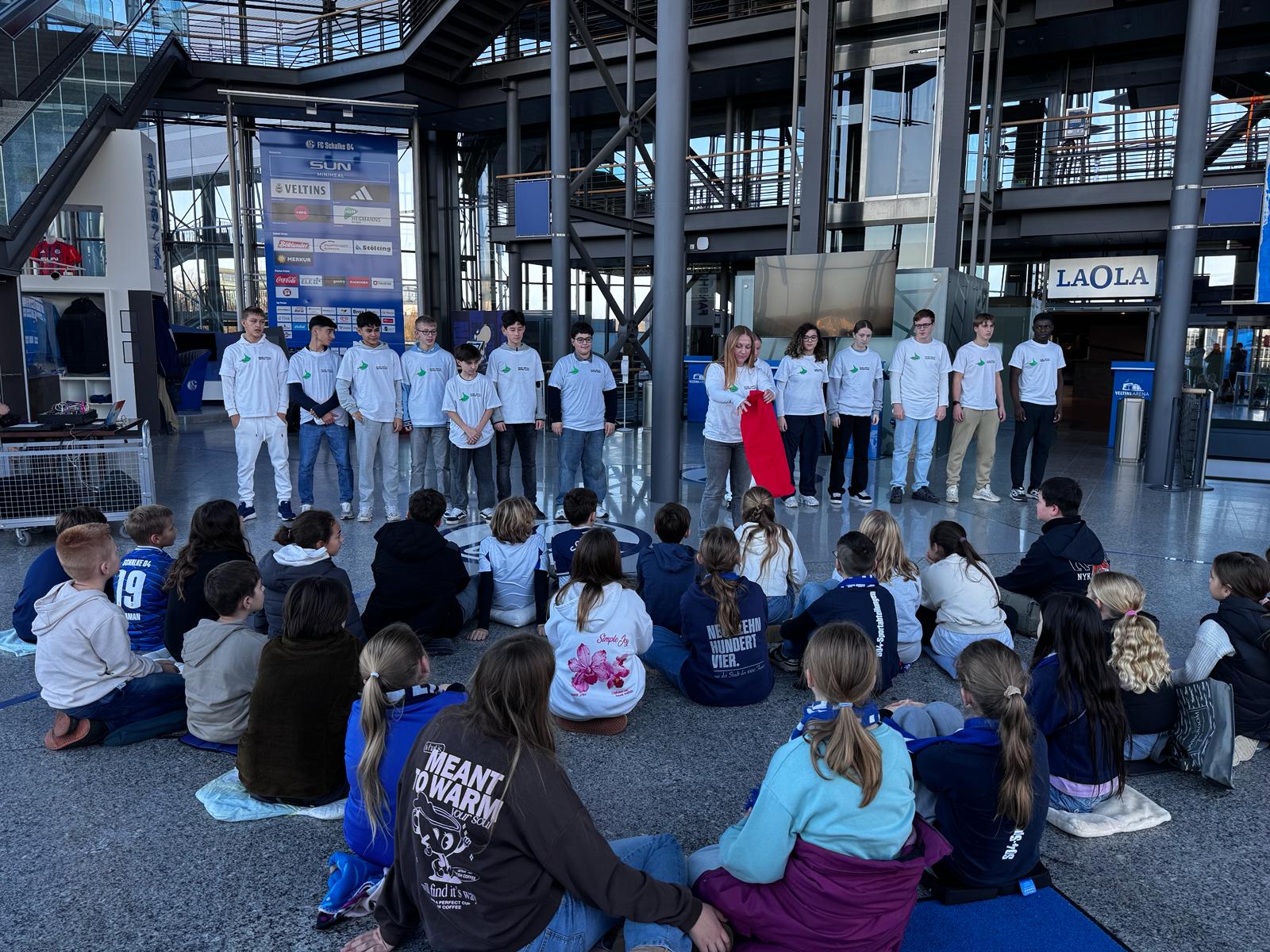 Am heutigen Tag nahm unsere Klasse 5d des Max-Planck-Gymnasiums Gelsenkirchen-Buer in Begleitung von Frau Mohr und Herrn Fischer am kulturellen Bildungsprojekt „Roter Teppich – grüner Rasen“ teil. Unsere Schülerinnen und Schüler hatten dabei nicht nur sehr viel Spaß, sondern konnten auch erleben, wie kreativ und vielseitig sich Fußball, Bewegung, Musik und künstlerischer Ausdruck miteinander verbinden lassen.