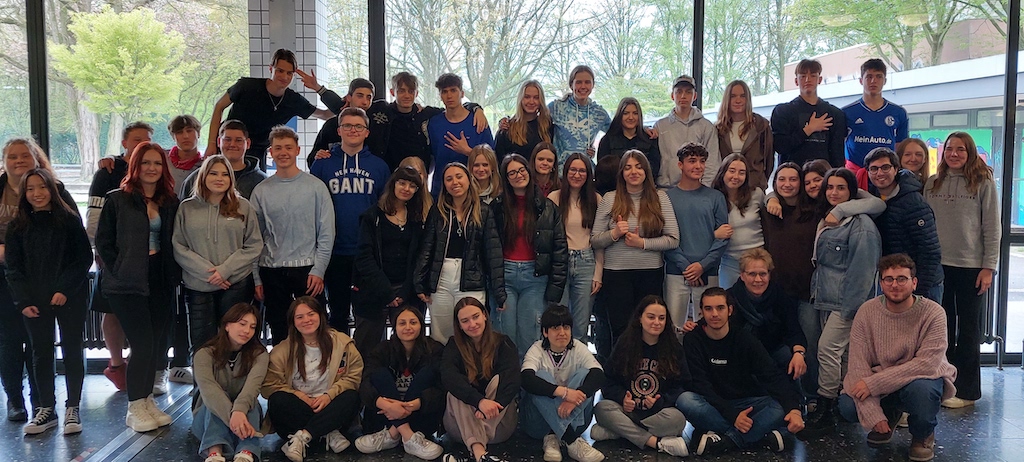 Vom 16.03. bis zum 22.03.2025 waren dann die italienischen Lernende des Liceo Statale Augusto Monti mit ihren Lehrkräften zu Gast in Gelsenkirchen. Neben dem Besuch des Unterrichts an einem Vormittag standen Ausflüge nach Recklinghausen, Köln und Münster sowie die gemeinsame Gestaltung des Ausstellungstisches in unserer Pausenhalle auf dem Programm.