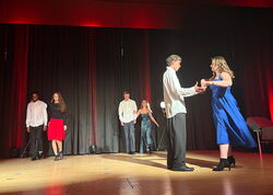 Am 15.05.25 feierte das Theaterstück des Kurses „Darstellendes Spiel“ der Jahrgangsstufe 10 Premiere in der Aula des MPG. Etwas länger als ein halbes Jahr haben die Schülerinnen und Schüler unter der Leitung von Herrn Wickermann an der Ausgestaltung ihrer Rollen und der Inszenierung gearbeitet. Das Ergebnis war beeindruckend: Eine ehrgeizige Unternehmensberaterin muss zur Strafe für einen von ihr verschuldeten Unfall sieben Jugendlichen einer Förderschule das Tangotanzen beibringen. Die Tanzszenen und die intensive schauspielerische Darstellung riefen beim Publikum Begeisterungsstürme hervor.