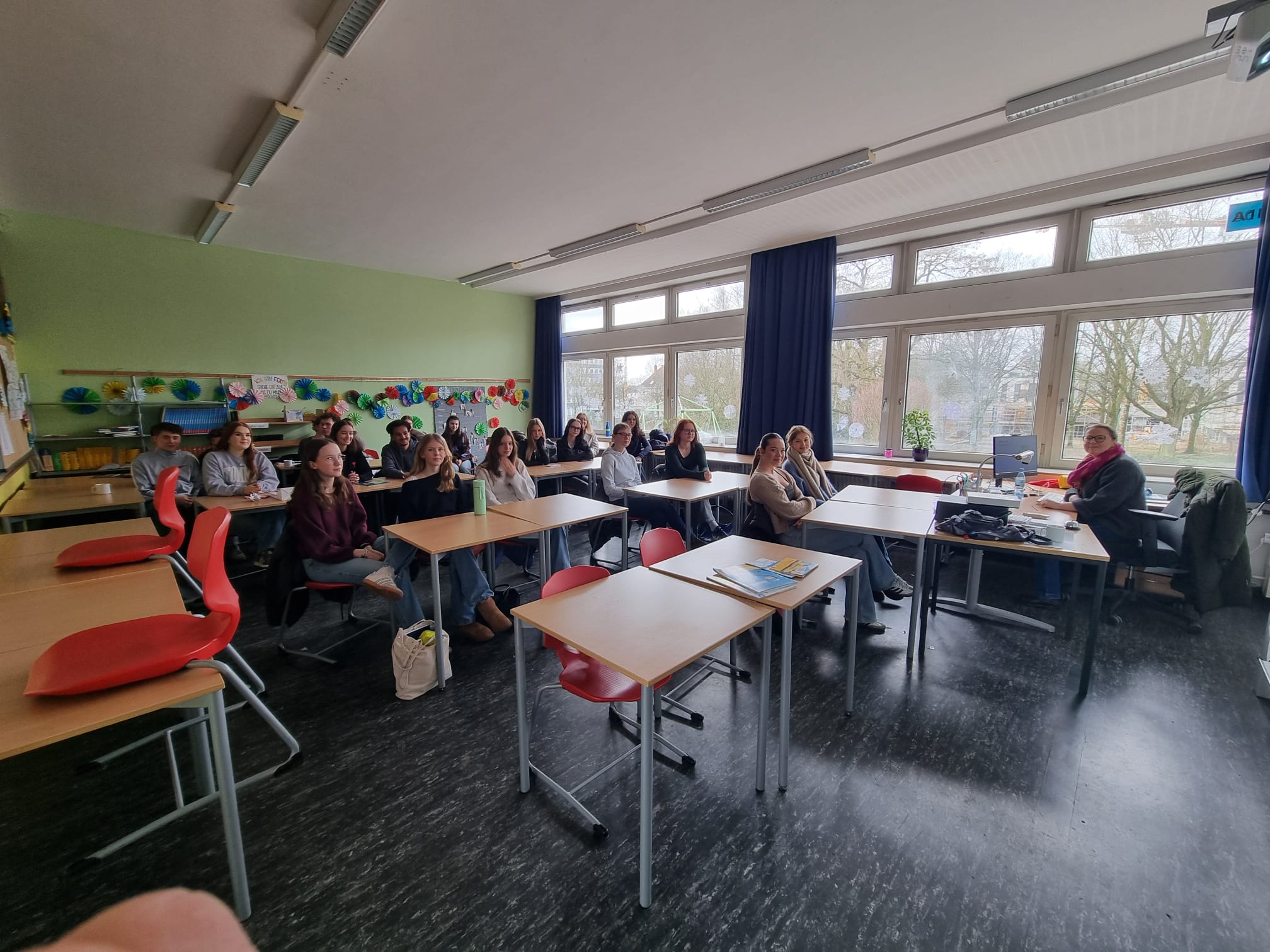 Das Ziel unseres Berufsinformationstages ist es, den Schülerinnen und Schülern der Jahrgangsstufe Q1 praxisnahe Einblicke in unterschiedliche Ausbildungswege, Studiengänge und andere Möglichkeiten nach dem Abitur wie etwa Auslandsaufenthalte und den Bundesfreiwilligendienst zu bieten. Viele der Referentinnen und Referenten nehmen seit geraumer Zeit regelmäßig an der Berufsinformationsbörse teil, das Teilnehmendenfeld wird aber auch kontinuierlich erweitert, um den Schülerinnen und Schülern eine breit gefächerte Vielfalt an möglichen Zukunftsoptionen vorstellen zu können. Die Schülerinnen und Schüler hatten sich im Vorfeld des Berufsinformationstages individuell interessengeleitet für die Teilnahme an Vortrags- und Diskussionsveranstaltungen angemeldet, in denen die Vertreterinnen und Vertreter aus zahlreichen Berufsfeldern ihren Arbeitsalltag vorstellten, aber auch wertvolle Tipps zu Ausbildung und Studium lieferten. Die Bandbreite an Angeboten reichte von grundsätzlichen Informationen zur Studienorientierung, zur Studienwahlentscheidung und zum dualen Studium über Vorträge zu konkreten Studien- und Ausbildungsgängen in den Bereichen Diplomfinanzwesen, Bankwesen, Versicherungswesen, Mathematik, Datenanalyse und Unternehmenssteuerung, Patentrecht und Prozessoptimierung, Wasserstoffsysteme und erneuerbare Energien, Wärmeversorgung, Natur- und Geowissenschaften, Architektur und Stadtplanung, Bauingenieurwesen, Veranstaltungsmanagement und Veranstaltungstechnik, Fortbildung, Coaching und Erziehungswissenschaften, Grundschullehramt und Lehramt an Gymnasien und Gesamtschulen bis hin zum Bundesfreiwilligendienst, zu den Möglichkeiten im Rahmen eines Gap Years (Work & Travel oder Freiwilligendienst im Ausland), zu militärischen und zivilen Berufen bei der Bundeswehr und zum Berufsbild Polizeibeamtin/Polizeibeamter. Die Westfälische Hochschule war gleich mit mehreren Referierenden anwesend, deren Angebotspalette an Informationsveranstaltungen die Studiengänge Umwelttechnik, Business Studies, Entertainment-, Event- und Sportbusiness, Digital Business und IT Management, International Business Studies, Wirtschaftspsychologie, Elektrotechnik, Chemie, Maschinenbau sowie Wirtschaftsingenieurwesen umfasste. Zudem wurde auch noch die Hightechwerkstatt „MakerSpace“ vorgestellt.