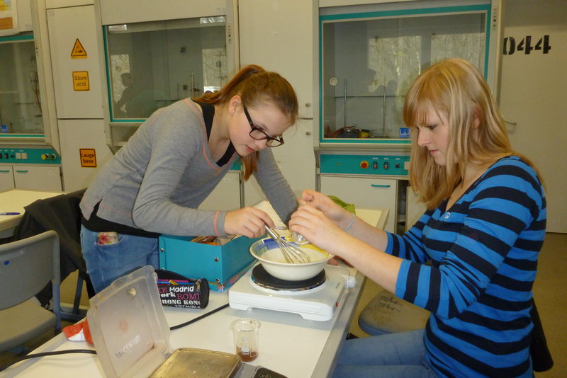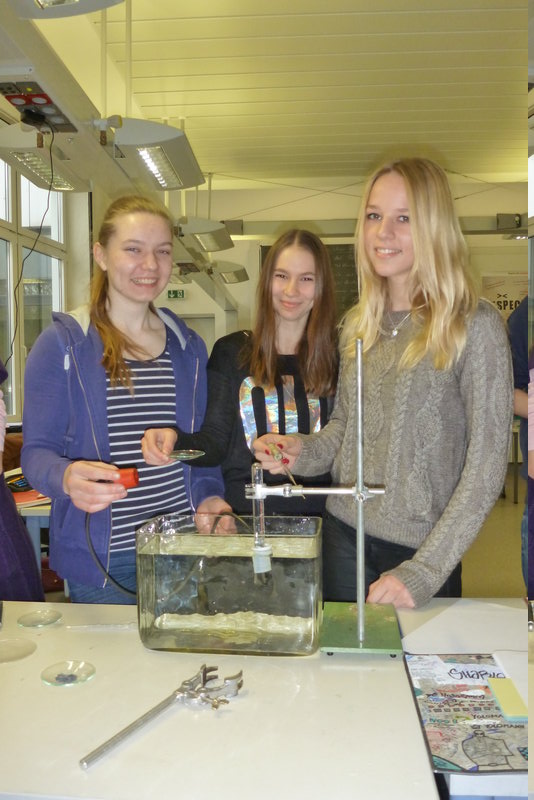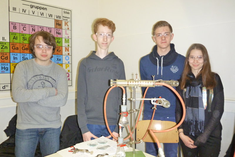 In den sehr gut ausgestatteten Fachräumen der Chemie bieten Schülerarbeitsplätze mit Gas, Strom, Wasser und einigen Abzügen den Schülerinnen und Schülern den erforderlichen Raum zum eigenständigen Experimentieren.