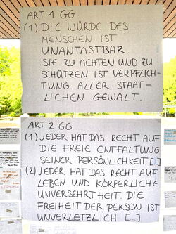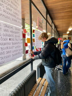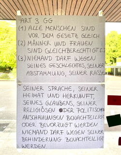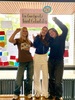 Unsere Schülerinnen und Schüler hatten die Gelegenheit, sich in der Pausenhalle zu verschiedenen Artikeln des Grundgesetzes zu äußern. Dabei haben sie darüber nachgedacht, wie diese Artikel in ihrem eigenen Leben berücksichtigt werden können und wie sie Demokratie aktiv leben.