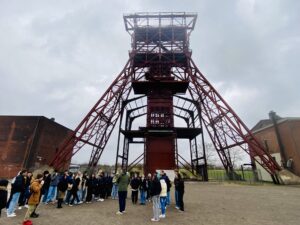 Es entsteht vor dem Musiktheater, das nach dem Turnier zum Museum mit einer virtuellen Ausstellung wird. Botschafterin für das Projekt des Referats Kultur der Stadt Gelsenkirchen ist Fußballweltmeisterin Steffi Jones. Wobei die Konzeption und künstlerische Leitung des gesamten Projekts bei der Künstlerin Alma Gildenast liegt. Ganz konkret für das MPG bedeutet dies, dass die Vorbereitungen für dieses Event in der Gastgeberstadt Gelsenkirchen schon seit Monaten auf Hochtouren laufen und das wegweisende Projekt „Stadion der Träume“ 15 Schüler:innen unserer Schule seit Januar in die künstlerische Ideenfindung involviert. Die erste Veranstaltung fand im Rahmen der überregional bekannten Mythos Tour von Olivier Kruschinski statt. Herr Kruschinski verstand es, unseren Schüler:innen die Stadt Gelsenkirchen hinsichtlich ihrer architektonischen und städtischen Geschichte näher zu bringen und wir besuchten das Musiktheater, die St. Joseph Kirche in Schalke, die Zeche Consol in Bismarck und die Schalke Arena. So bekamen wir einen ersten Eindruck davon, wie in Gelsenkirchen Träume entstehen und gelebt werden.