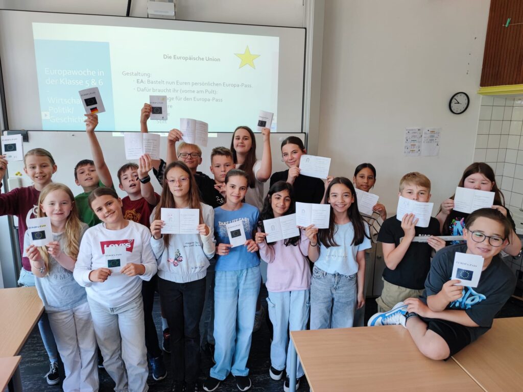 Die Jahrgangsstufen 5 und 6 setzten sich unter dem Motto „EU und Du – Europa im Alltag“ mit den Grundlagen der Europäischen Union auseinander. Neben spannenden Unterrichtseinheiten gestalteten die Schüler:innen ihren eigenen EU-Pass, der spielerisch die Verbindung zwischen der EU und dem persönlichen Alltag verdeutlichte.