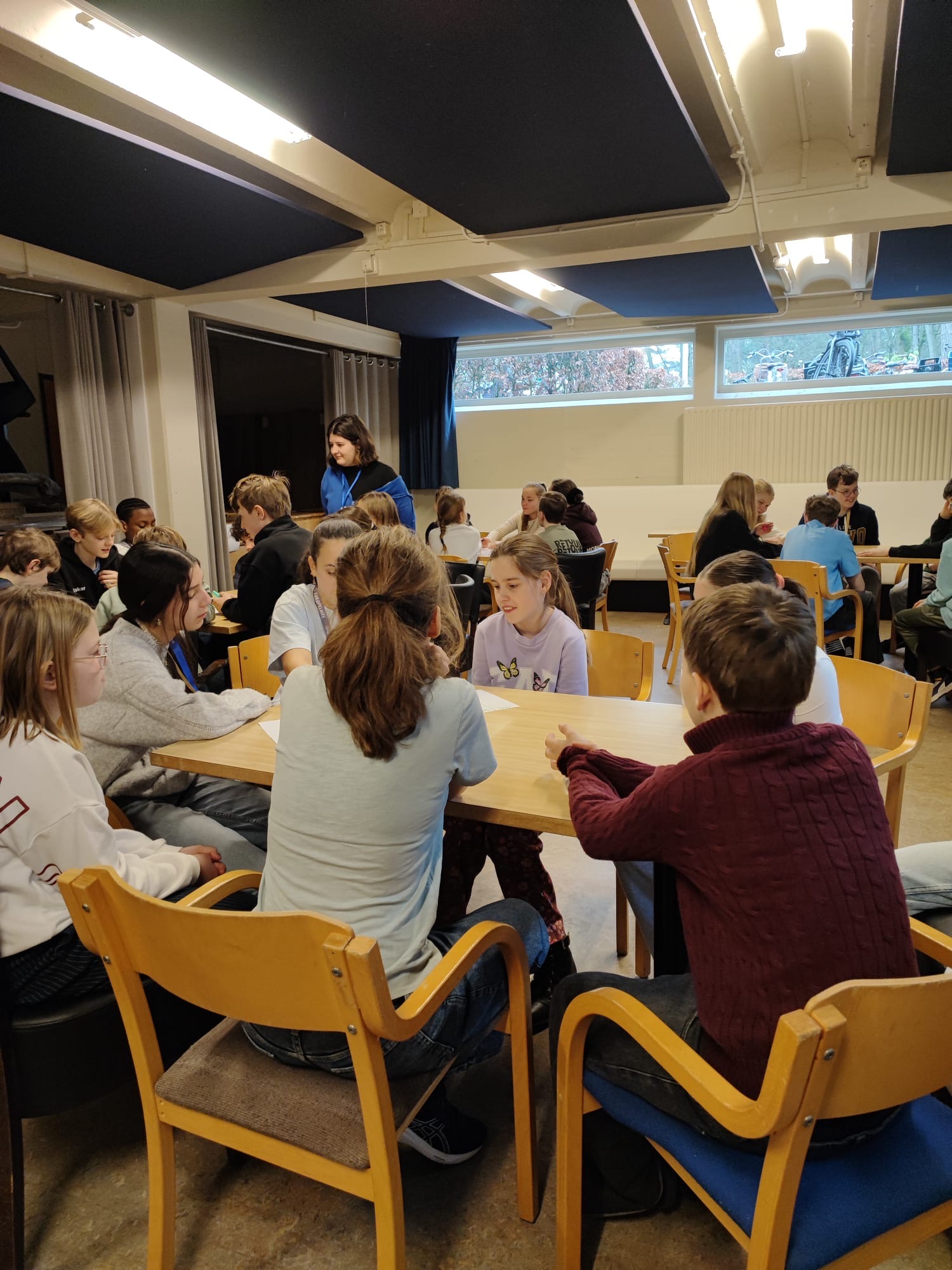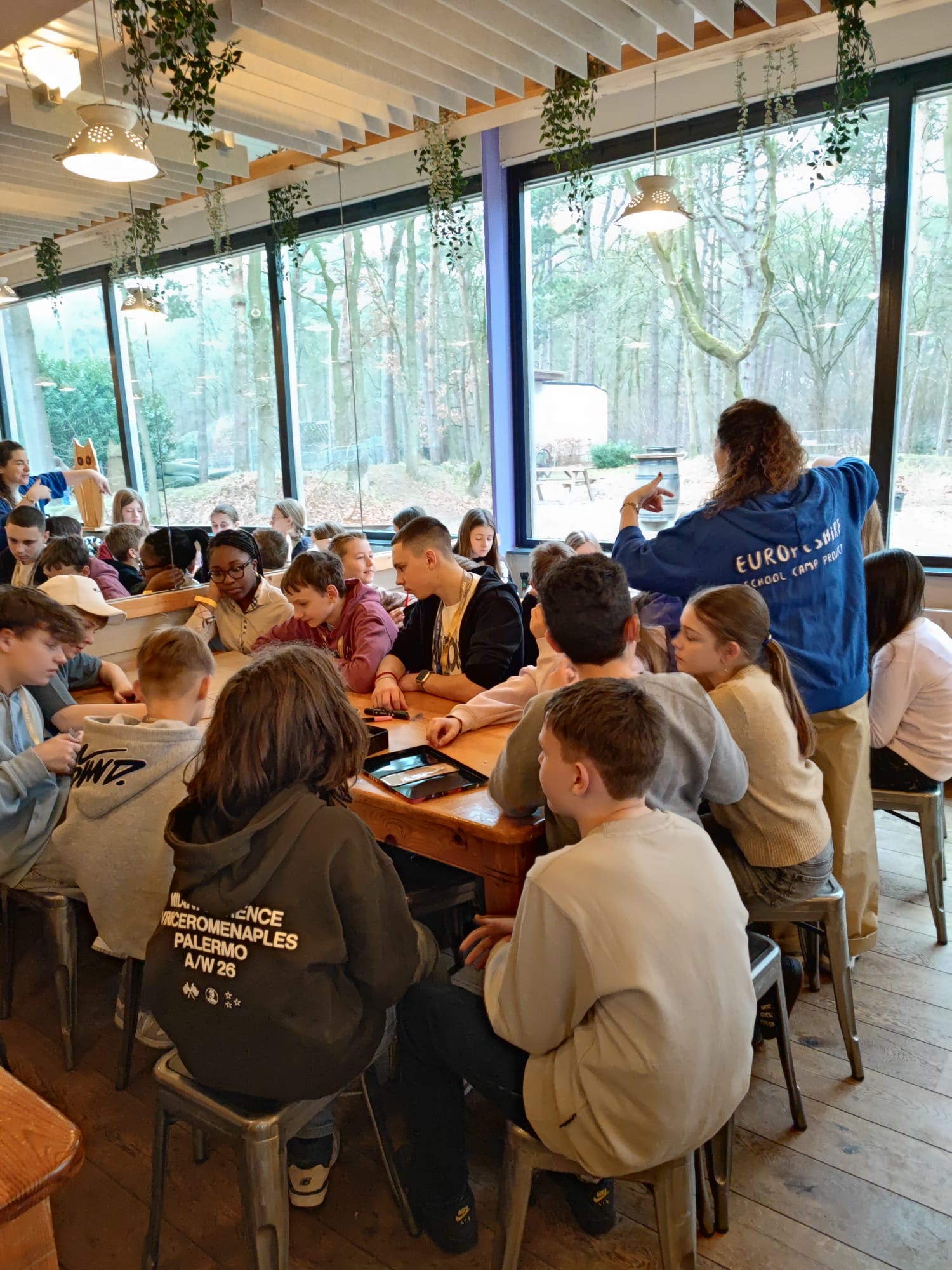 Seine Englischkenntnisse verbessern und gleichzeitig neue Freunde aus ganz Europa kennenlernen? Das erlebt man nur bei Europeshire. Beim freiwilligen Europeshire-Camp handelt es sich um einen dreitägigen von englischen Muttersprachlern geleiteten Workshop in den Niederlanden. In diesem Workshop kommen Schulgruppen aus vielen verschiedenen europäischen Ländern zusammen, um gemeinsam Spaß zu haben und dabei ihre Englischkompetenzen weiter zu fördern. In diesem Jahr machten sich 45 Schülerinnen und Schüler des 7. Jahrgangs auf den Weg nach Valkenswaard in den Niederlanden. Begleitet wurden sie von Frau Sondermann und Frau Mohr. Neben den Kontakten zu Gruppen aus anderen europäischen Ländern wurde in diesem Jahr erstmals eine niederländische Grundschule besucht, um Einblicke in das Lernen in den Niederlanden zu erhalten.