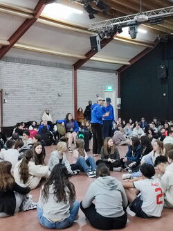 Seine Englischkenntnisse verbessern und gleichzeitig neue Freunde aus ganz Europa kennenlernen? Das erlebt man nur bei Europeshire. Beim freiwilligen Europeshire-Camp handelt es sich um einen dreitägigen, von englischen Muttersprachlern geleiteten Workshop in den Niederlanden. In diesem Workshop kommen Schulgruppen aus vielen verschiedenen europäischen Ländern zusammen, um gemeinsam Spaß zu haben und dabei ihre Englischkompetenzen weiter zu fördern. In diesem Jahr machten sich 45 Schülerinnen und Schüler des 7. und 8. Jahrgangs auf den Weg nach Someren in den Niederlanden. Begleitet wurden sie von Frau Sondermann, Herrn Koriath und Herrn Schwan. Unsere Schülerinnen und Schüler hatten wieder einmal jede Menge Spaß bei diesem tollen Projekt und konnten Gleichaltrige aus Belgien, Polen, Spanien und der Türkei treffen.