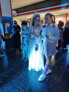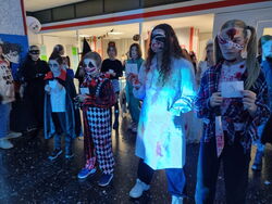 Einen Tag vor dem „richtigen“ Halloween-Fest stieg am MPG die Halloween-Party für die Schülerinnen und Schüler der Jahrgangsstufen 5-7. Wie immer wurde die Veranstaltung von unserer Schülervertretung perfekt organisiert. Die Cafeteria verwandelte sich in kurzer Zeit in einen Partyraum, inklusive DJ und Lichtshow. Am späten Nachmittag fanden sich viele toll kostümierte und geschminkte Vampire, Horrorclowns, Geister und Gespenster ein, um zu tanzen und zu feiern. Der Höhepunkt war mal wieder der Escape-Room, der während der ganzen Party voll ausgebucht war. Vielen Dank an die SV und das Technikteam für die tolle Unterstützung und Organisation.