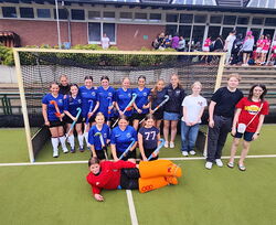 Am 26.06.2025 traten unsere Hockeymädchen beim Landesfinale an. Hatten sie sich im Bezirksfinale noch gegen Rheine, Oelde und Münster durchgesetzt, bekamen sie es jetzt mit ganz anderen Kalibern zu tun. Dass gegen die traditionell starken Schulhockeymannschaften des Rheinlandes (Köln, Mülheim, Duisburg) nur wenig zu holen ist, war den Mädchen unseres Hockeyteams schon vorab bewusst. Doch diesmal fand sich nach vielen Jahren wieder ein Vertreter des Bezirkes Arnsberg, das Mallinckrodt-Gymnasium aus Dortmund, auf dem Landesfinale ein. Gleich im ersten Spiel ging es für beide Mannschaften um den 4. oder 5. Platz in diesem Turnier. Es war noch keine Minute gespielt und wir führten 1:0. Doch gleich im Gegenzug fiel das 1:1. So ging es dann hin und her: 2:1 – 2:2 – 3:2 Endstand 3:3. Am Ende kassierten wir leider mehr Gegentore als das Malinchrodt-Gaymnasium in den Spielen gegen die Rheinländer. Im nächsten Jahr greifen wir wieder an.
