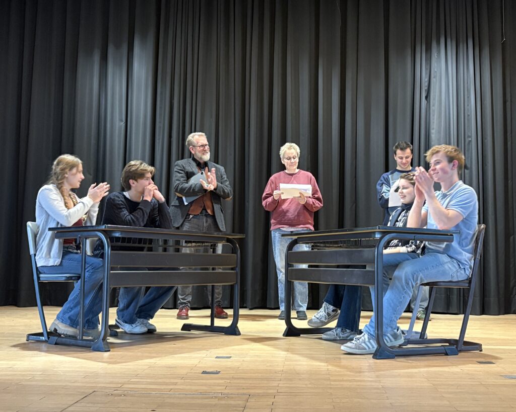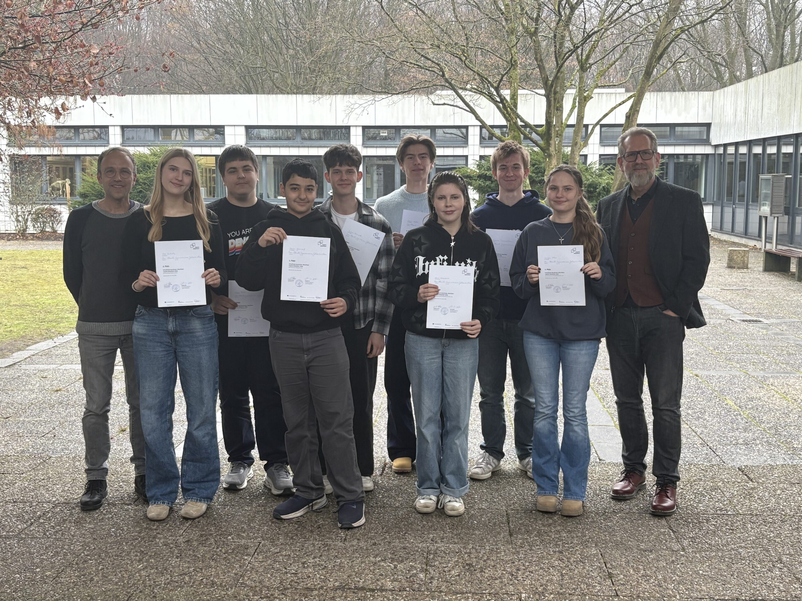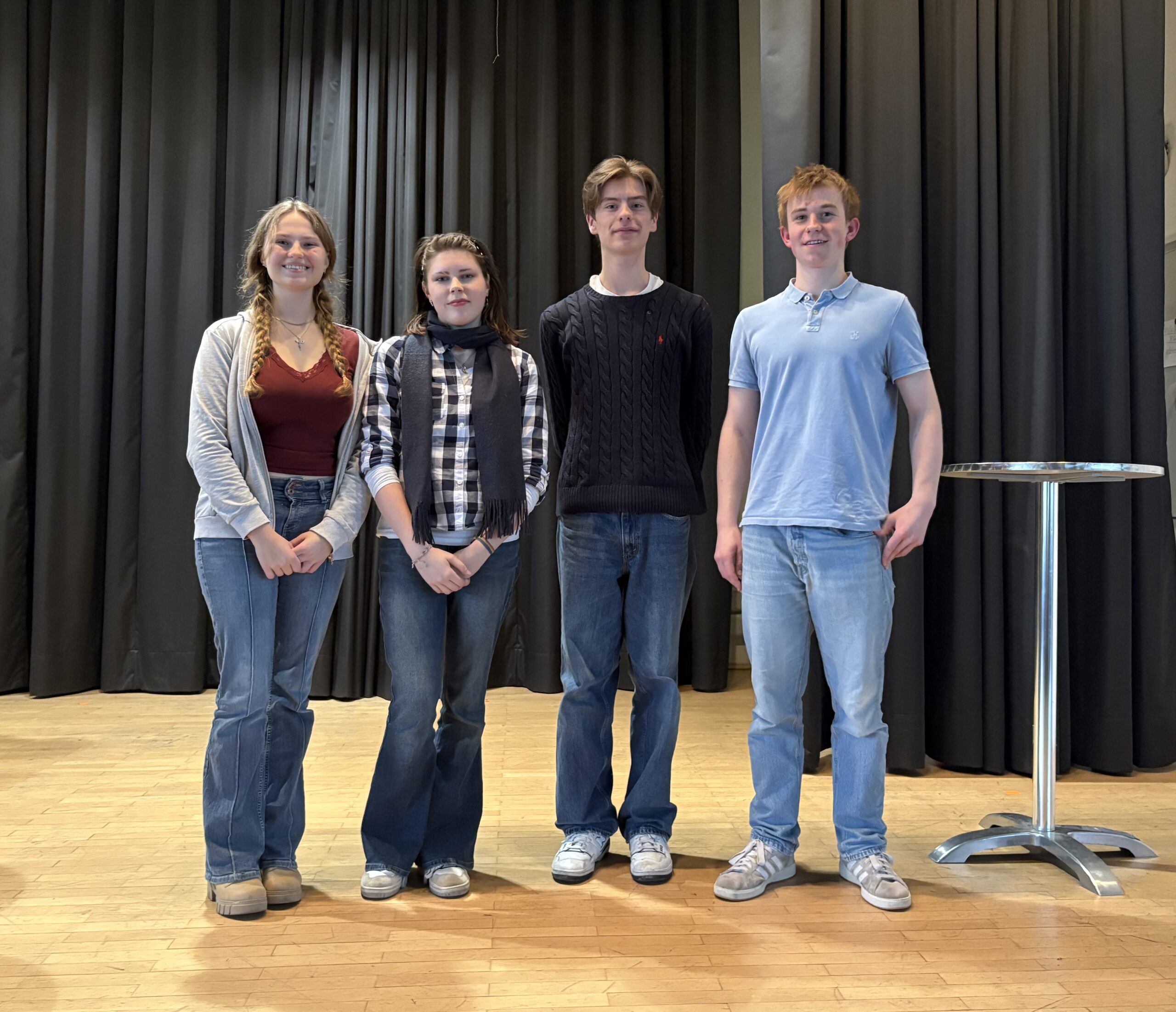 Omar, Mia, Johannes und Vivien werden am 18.02. beim Regionalentscheid in Marl alles geben, um in Philipp Urbankes Fußstapfen zu treten! Vivien wird dort bereits zum zweiten Mal antreten, weil sie 2024 als Schulsiegerin in der Altersgruppe I schon mal beim Regionalwettbewerb debattieren durfte. Julian und Oskar werden als potenzielle Nachrücker auch dabei sein, mit etwas Glück werden sie dann vielleicht ebenfalls zum Zug kommen. Wir drücken auf jeden Fall allen ganz fest die Daumen!!!