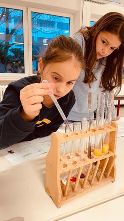 An beiden Nachmittagen wurden die Schülerinnen von Fachlehrkräften der Schule und Schülerinnen der Differenzierungskurse Biologie begleitet.