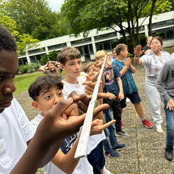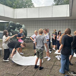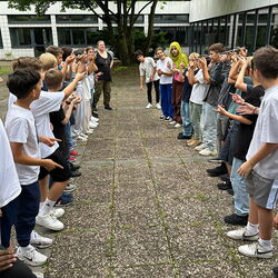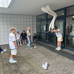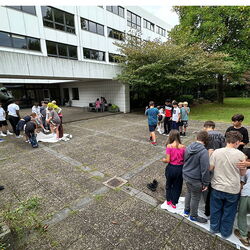 In der vergangenen Schulwoche führte der gesamte 7. Jahrgang das Trainingsprogramm „Meistere dein Kopfkino“ durch. Jeweils einen ganzen Schultag übten die Klassen den konstruktiven Umgang mit Mobbing- und Konfliktsituationen. Es ging zudem um positives Denken, den respektvollen Umgang miteinander und um Selbstvertrauen in das eigene Handeln. Unsere Schülerinnen und Schüler waren mit vollem Eifer bei der Sache. Unter anderem mussten sie versuchen, eine Decke umzudrehen, ohne dass jemand den Boden berührt und einen Zollstock auf den Zeigefingern zu balancieren. Durchgeführt wurde die Veranstaltung von Frau Birgit Busse, Gründerin von „Die Stärkenakademie“.
