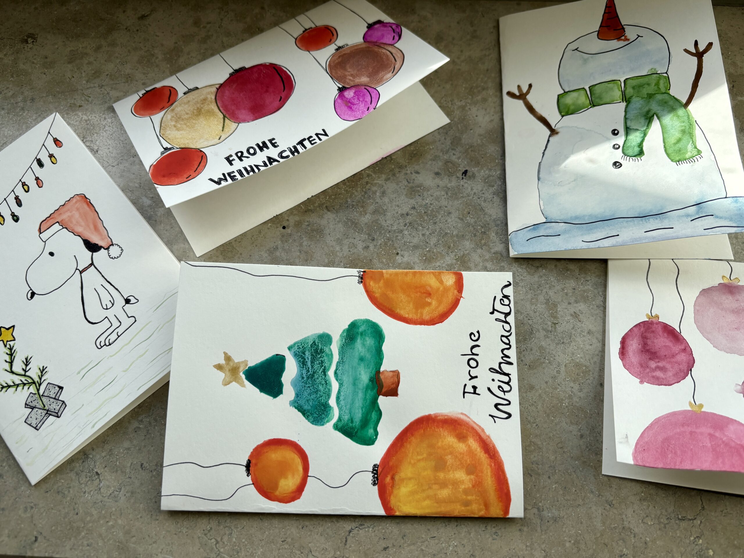 In unserem Weihnachtskarten-Workshop wurde geschnitten, gestempelt, gemalt und gelacht – und dabei sind wunderschöne, handgemachte Karten entstanden!
