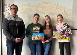 Zwei Gruppen von Schülerinnen des MPG nahmen an dem diesjährigen Landeswettbewerb Aus der Welt der Griechen teil. Innerhalb des MPG konnten sich Lotte Böcker und Emilia Rutkowski (8c) mit einem Hörspiel zu Ungeheuern aus der griechischen Mythologie durchsetzen; Lara Kuczenski, Ciara Schierle und Delia Uzunel (8b) hatten ein Memoryspiel zu antiken griechischen Tempeln entwickelt. Neben Urkunden wurde jeder Gruppe von dem sie betreuenden Lehrer Dr. Penzel ein Siegespreis überreicht.