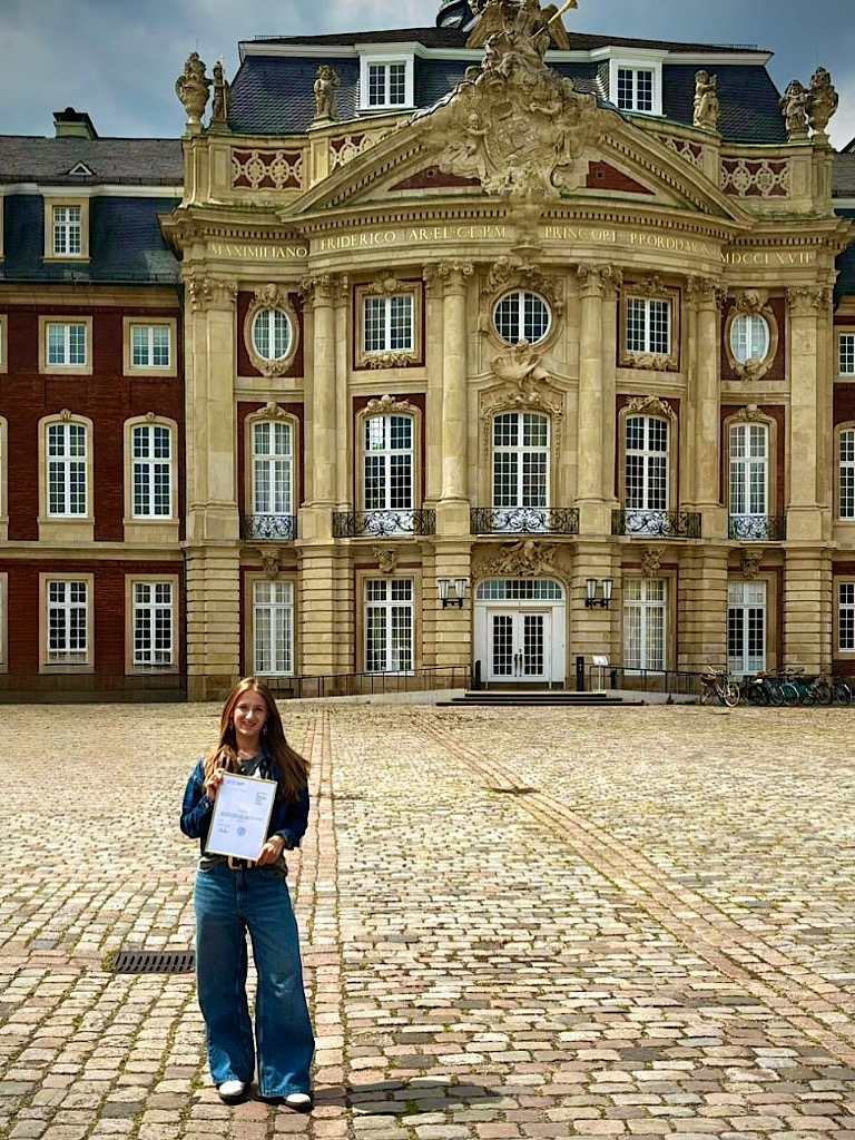 Schon seit Langem verfolge ich den Wunsch, später einmal als Anwältin zu arbeiten. Um diesem Ziel näherzukommen, habe ich beschlossen, meine Zeit in der Einführungsphase zu nutzen und im Wintersemester 2024/25 am Juniorstudium der Universität Münster teilzunehmen.