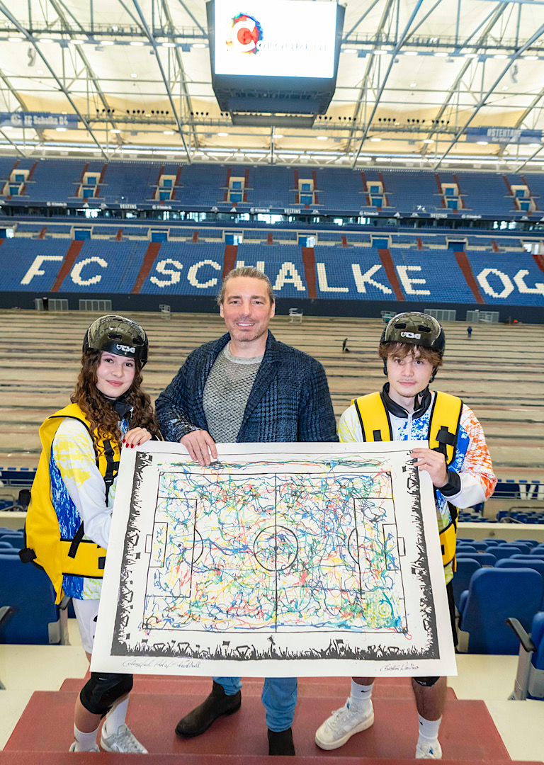 Am 05.05.24 wird der Gelsenkirchener Künstler Christian Nienhaus mit insgesamt 52 Spielerinnen und Spielern in der Arena auf Schalke das größte Bild der Welt malen und unsere Schülerinnen und Schüler sind mit dabei, unter anderem Mara Neubauer (Q1) und Fynn Sobulewski (Q2).