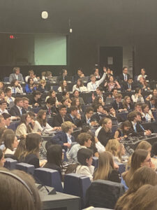 Vorweg gegangen war der Präsenzphase in Straßburg, an der über 460 Schülerinnen und Schüler aus elf Nationen teilgenommen haben, eine intensive und über monatelang andauernde Vorbereitungsphase. In dieser hatte sich das MPG-Team mit allen anderen Teilnehmerinnen und Teilnehmern bereits in mehreren Meetings digital in Fraktions- und Fachausschussgruppen ausgetauscht und (Änderungs-)Anträge vorbereitet.