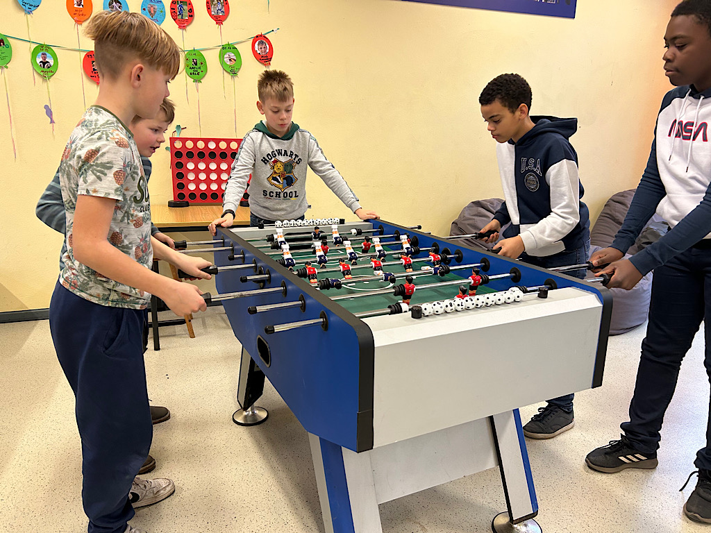 Im Anschluss beginnt der Freizeitbereich mit vielfältigen Angeboten, die den Kids nach Lust und Laune zur Verfügung stehen: saisonale, kreative Gestaltungsangebote, einfache und nachvollziehbare Geschenkideen, Legotische für Lernende, Rätsel und zahlreiche Gesellschaftsspiele – nach Vorlieben auch mal eine Runde Kickern oder Air-Hockey.