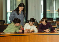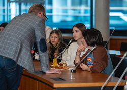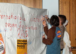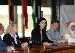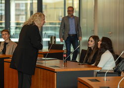 Die Teilnehmerinnen und Teilnehmer unseres Projektes „Rap gegen Rechts“ präsentierten am 21.03.25 auf Einladung des Integrationsrates der Stadt Gelsenkirchen ihr Video bei einer Veranstaltung im Ratssaal der Stadt. Im Rahmen der Internationalen Wochen gegen Rassismus wurde unter dem Motto „Menschenwürde schützen“ in einem offenen Dialog über die Themen Demokratie, Gleichberechtigung und Mitbestimmung gesprochen. Unser Video kam bei den anwesenden Gästen und Teilnehmenden des Nachmittags sehr gut an. Herr Feldhaus als stellvertretender Schulleiter begleitete die Schülerinnen und Schüler zu dieser Veranstaltung.