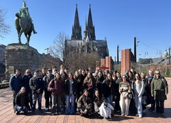 Vom 16.03. bis zum 22.03.2025 fand nun die zweite Woche unseres zweiwöchigen Schüleraustau­sches mit dem Liceo Statale Augusto Monti in Chieri (Italien) statt, an dem 16 Schülerinnen und Schüler der Italie­nischkurse der Einführungsphase teilnahmen. Neben dem Besuch des Unterrichts an einem Vormittag standen Ausflüge nach Recklinghausen, Köln und Münster sowie die gemeinsame Gestaltung des Ausstellungstisches in unserer Pausenhalle auf dem Programm. Nach dem Empfang der italienischen Gäste am Sonntagmit­tag vor der Schule ging es zunächst in die deutschen Gastfa­milien zum Mittagessen. Am Nachmittag führten dann die deutschen Schülerinnen und Schüler durch die Innenstadt von Buer und in­formierten über den Stadtteil und seine Sehenswürdigkeiten in Kurzvorträgen in italienischer Sprache. Nach dem Besuch des Kunstmuseums ging es zum ge­meinsamen Currywurst-Essen und der erste Tag endete im Firebowl mit einer Bowlingrunde.