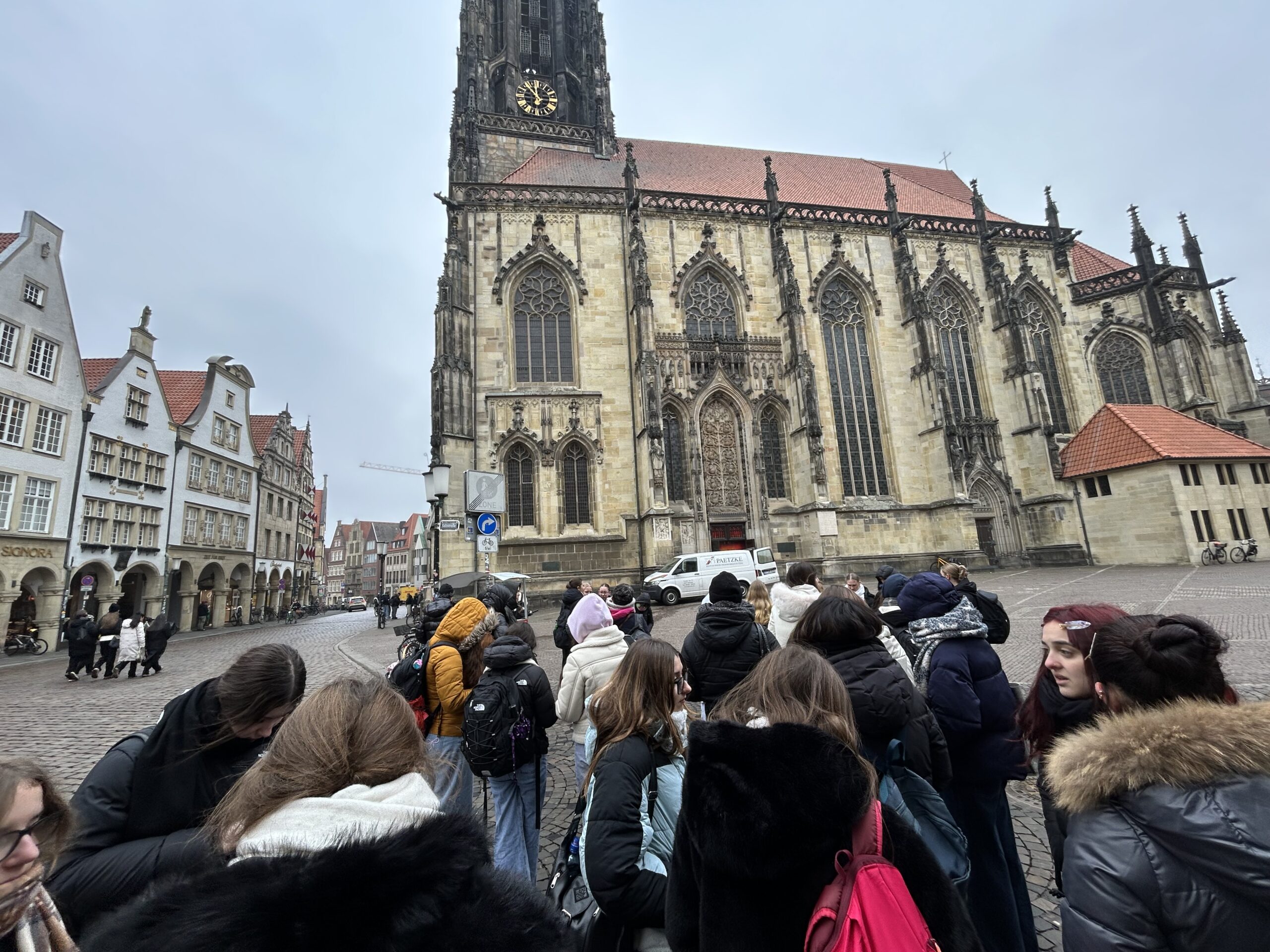 In der Zeit vom 01.02.2026 bis zum 07.02.2026 durften 18 Lernende unserer Italienischkurse der Sekundarstufen I und II insgesamt 15 Schülerinnen und 2 Schüler vom Polo Scolastico Volta della Val Tidone in Castel San Giovanni gemeinsam mit ihren drei Lehrerinnen am MPG im Rahmen unseres alljährlich stattfindenden Schulaustausches mit Italien begrüßen. Die erste Austauschwoche begann mit einem herzlichen Empfang und einem ersten entspannten Kennenlernen in den Gastfamilien. Montag wurden dann unsere italienischen Gäste zunächst durch die Schule geführt. Dann nahmen sie mit ihren Partnerinnen und Partnern an einzelnen Unterrichtsstunden teil und lernten am Nachmittag den Stadtteil Buer und seine Sehenswürdigkeiten kennen, indem ihnen markante Punkte von ihren deutschen Partnerinnen und Partnern gezeigt und in kurzen Präsentationen auf Italienisch vorgestellt wurden.