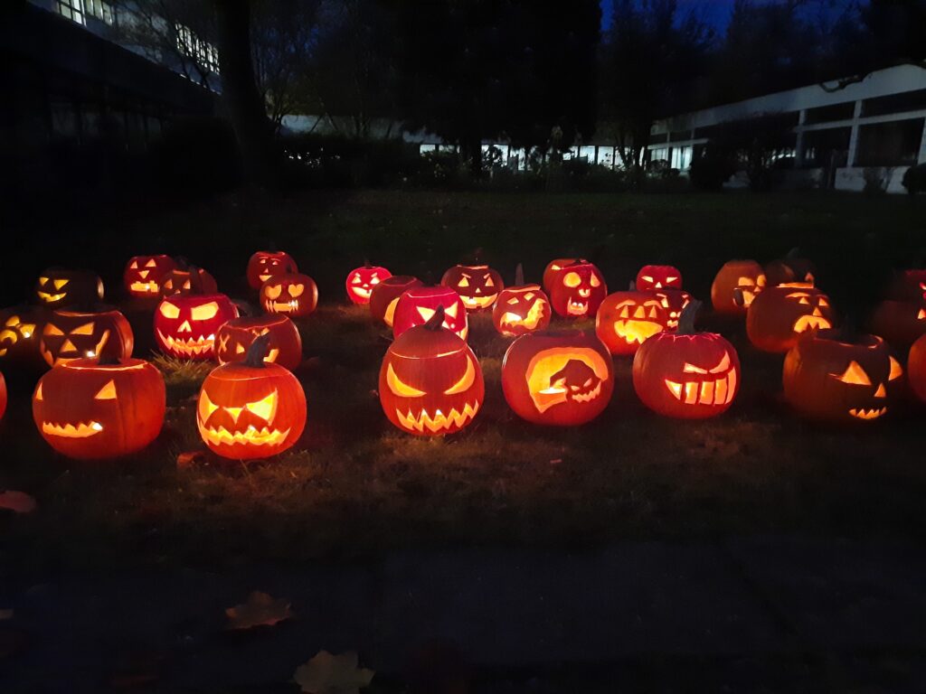 Wenn auf dem Schulhof der vertraute Duft von Herbst in der Luft liegt, dann ist klar: Unser alljährliches Kürbisschnitzen steht wieder vor der Tür! Am 30.10.25 folgten die Schülerinnen und Schüler der Klasse 5c der Einladung der Klassenlehrerinnen, die zu diesem fröhlichen Herbstbrauch einluden. Dabei wurden tolle Gruselgesichter aus den Kürbissen gezaubert und überall wurde gelacht, geschnitzt, geschabt – und natürlich stolz präsentiert, wenn ein gelungener Kürbis fertig war. Wieder einmal zeigte sich: Das gemeinsame Kürbisschnitzen als Klassengemeinschaft ist ein Ereignis, das Lehrkräfte, Eltern und Kinder zusammenbringt – gemütlich, kreativ und einfach rundum herbstlich.