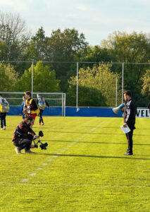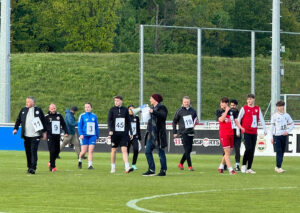 Es wurde ernst für die Spielerinnen und Spieler des Colourful Art of Football Projekts. Am 23.04.24 ging es auf den Rasenplatz der Schalker Profis und die zuvor gelernten Spielzüge wurden eintrainiert! Voller Spaß, voller Einsatz und fast volle Rucksäcke – mit diesen Worten lässt sich das Training beschreiben, denn auch unsere Schülerinnen und Schüler waren hinterher vollauf begeistert! 15 Liter Wasser waren beim Training in die Rucksäcke gefüllt worden, was das Spiel zwar verlangsamte, aber auf das große Event einstimmte. Dort warten 30kg Farbrucksäcke auf die Spielerinnen und Spieler! Künstler Christian Nienhaus und sein Trainer Christian Fischer waren mehr als zufrieden! So kann der große Tag (05.05.24), an dem das größte Bild der Welt gemalt wird, kommen!