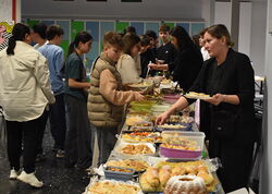 Am Freitag, den 7. März 2025, fand an unserer Schule der allererste Iftar für die 7. und 8. Klassen statt – und das mit einem ganz besonderen Fokus: Nachhaltigkeit. Ziel war es, im Monat Ramadan bewusster mit Ressourcen umzugehen, weniger Müll zu produzieren und mehr Verantwortung für unsere Umwelt zu übernehmen. Die Schülerinnen und Schüler brachten ihr eigenes Besteck und Geschirr mit, um Einwegprodukte zu vermeiden. Zudem bestand das Buffet überwiegend aus veganen und vegetarischen Gerichten, was nicht nur die Umwelt schonte, sondern auch die Vielfalt gesunder und nachhaltiger Speisen hervorhob. Trotz der vielen Vorbereitungen und Herausforderungen hat dank der tatkräftigen Unterstützung der Schulleitung, der Referendarinnen, der Eltern und insbesondere der Schülerinnen und Schüler alles reibungslos funktioniert.