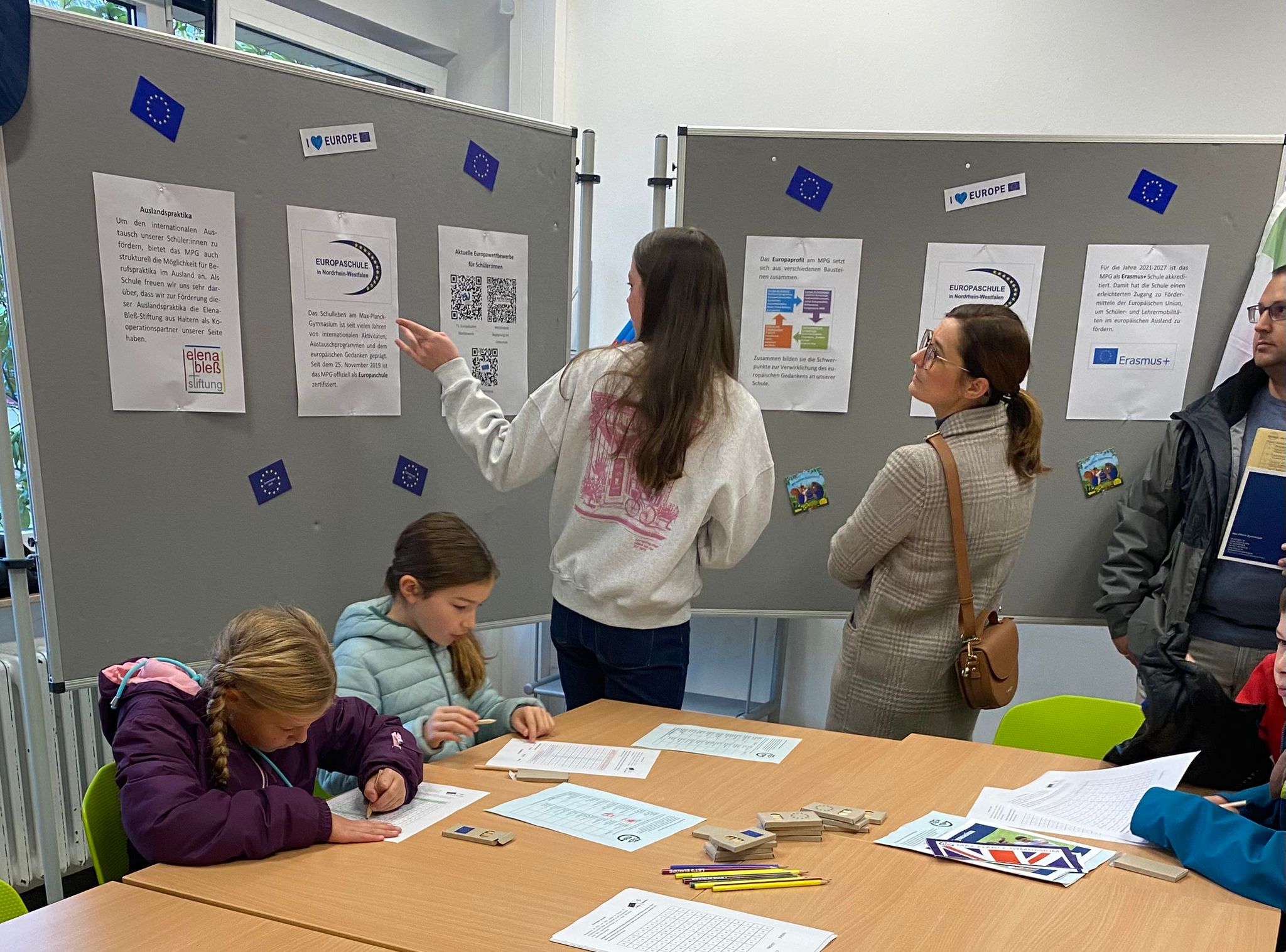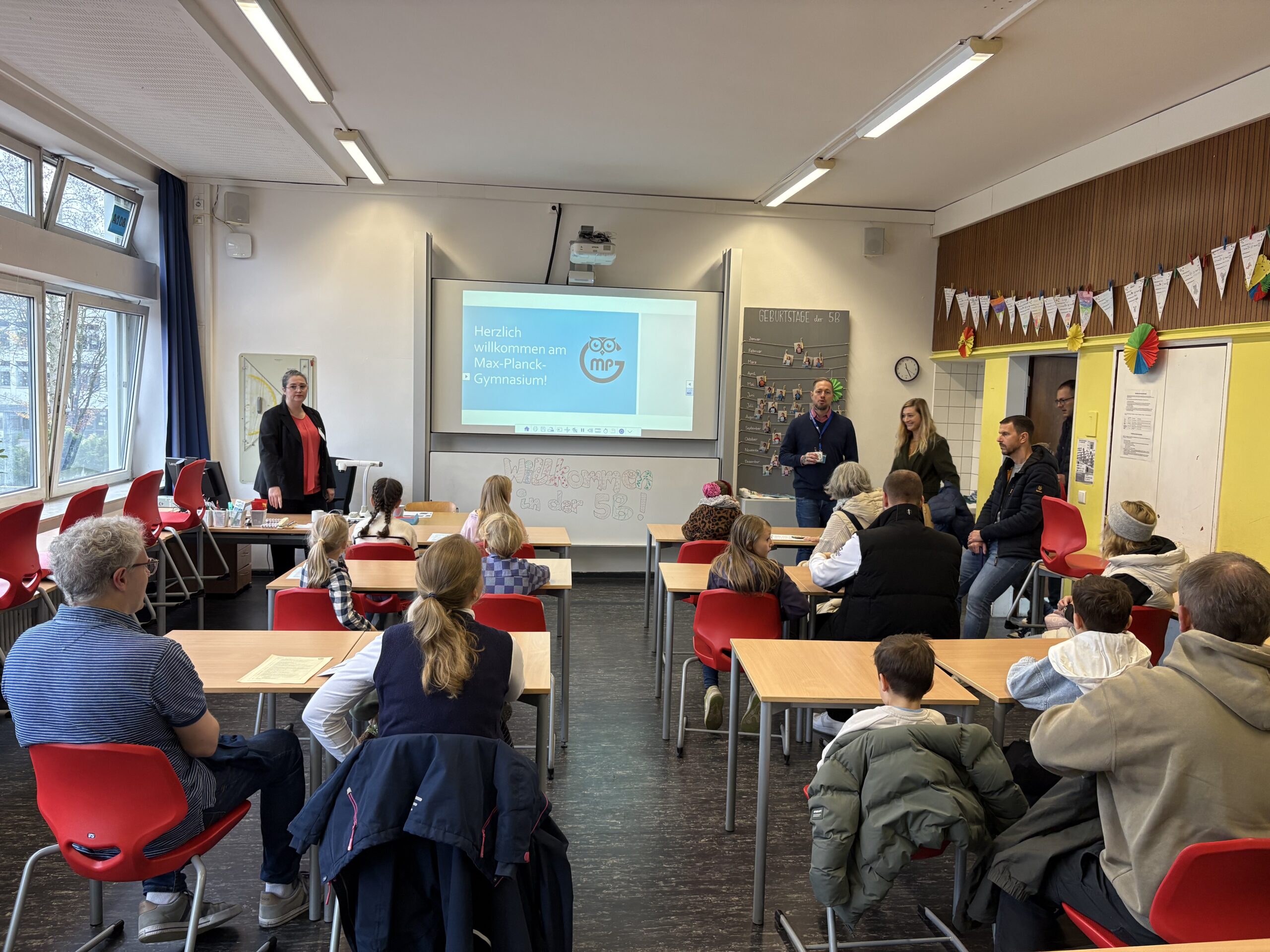 Am Samstag, 15.11.2025, öffnete unsere Schule ihre Türen für alle interessierten Viertklässlerinnen und Viertklässler sowie deren Eltern und Großeltern und lud zu einem abwechslungsreichen Tag voller Informationen, Gespräche und Mitmachaktionen ein. Mit dem Startschuss um 9:00 Uhr tummelten sich über den gesamten Vormittag verteilt zahlreiche Besucherinnen und Besucher, um mehr über unser unterrichtliches Angebot, unsere pädagogische Arbeit und die außerunterrichtliche Vielfalt am MPG zu erfahren. Im gesamten Schulgebäude wurden naturwissenschaftliche, musisch-künstlerische, sprachliche und sportliche Experimente und Aktivitäten angeboten, die begeistert angenommen wurden. Alle Fächer der Schule präsentierten sich auf sympathische und informative Weise. Allgemeine Informationsveranstaltungen und kurze Schulführungen, die von Lehrkräften, zahlreichen Schülerinnen und Schülern aus allen Jahrgangsstufen und engagierten Eltern durchgeführt wurden, rundeten unser Angebot ab. Wir blicken auf einen spannenden und gelungenen Tag der offenen Tür zurück und freuen uns, wenn es unseren Gästen bei uns gefallen hat.