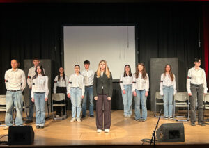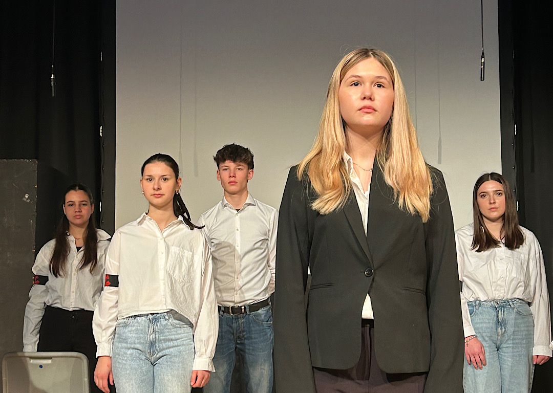 In einer eindrucksvollen Aufführung am 25. April 2024 zeigte der „Darstellendes Spiel“-Kurs des 10. Jahrgangs das Stück nach dem Roman von Morton Rhue in einer Bühnenfassung nach Motiven von Reinhold Tritt. Die Schauspielerinnen und Schauspieler haben fast ein Jahr lang Texte gelernt, unter der Leitung von Frau Brormann das Stück geprobt und mit ihr die Szenen weiterentwickelt und aktualisiert. Die Vorführung ging unter die Haut; das Beklemmende des Entstehens einer Diktatur wurde durch das Spiel der Jugendlichen deutlich. Das Publikum in der sehr gut besuchten MPG-Aula dankte es mit langem Applaus.
